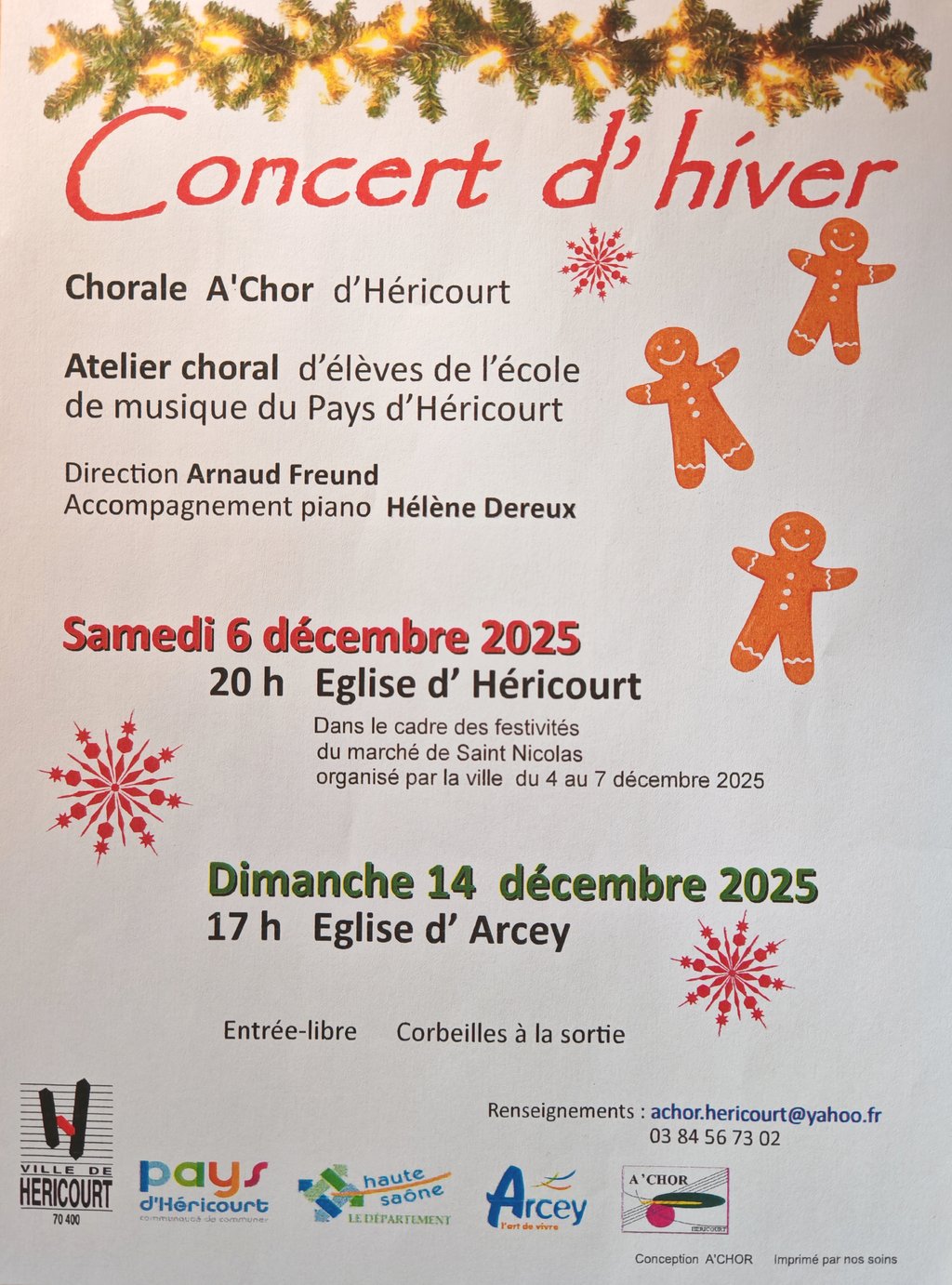 La chorale A'chor d'Héricourt se produira dans notre belle église d'Arcey ce dimanche 14 décembre 2025 à partir de 16h30.