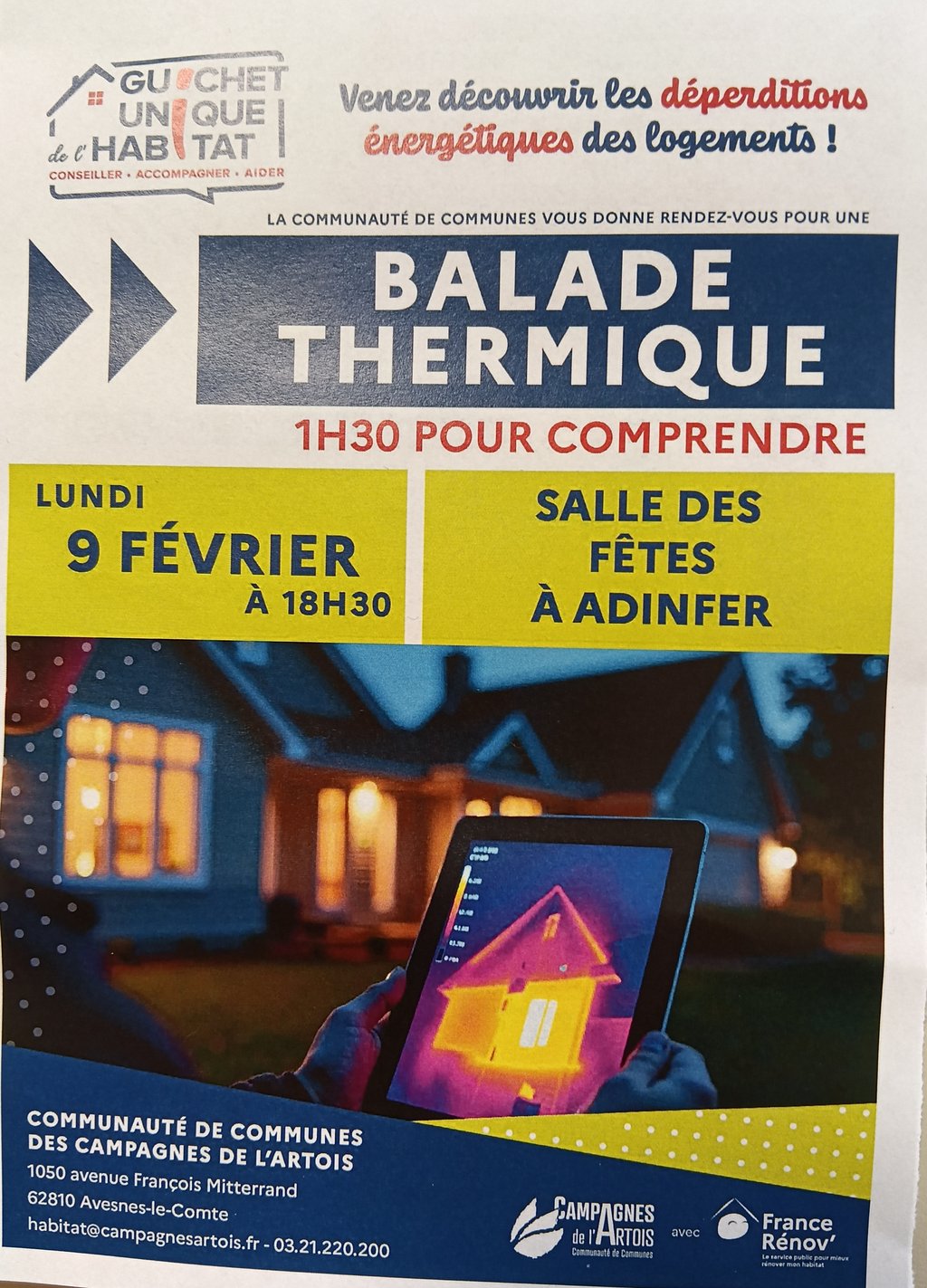 Une Balade nocturne est prévue avec la communauté de communes des campagnes de l'Artois le lundi 09 février 2026 à 18h30 au départ de la salle des fêtes.