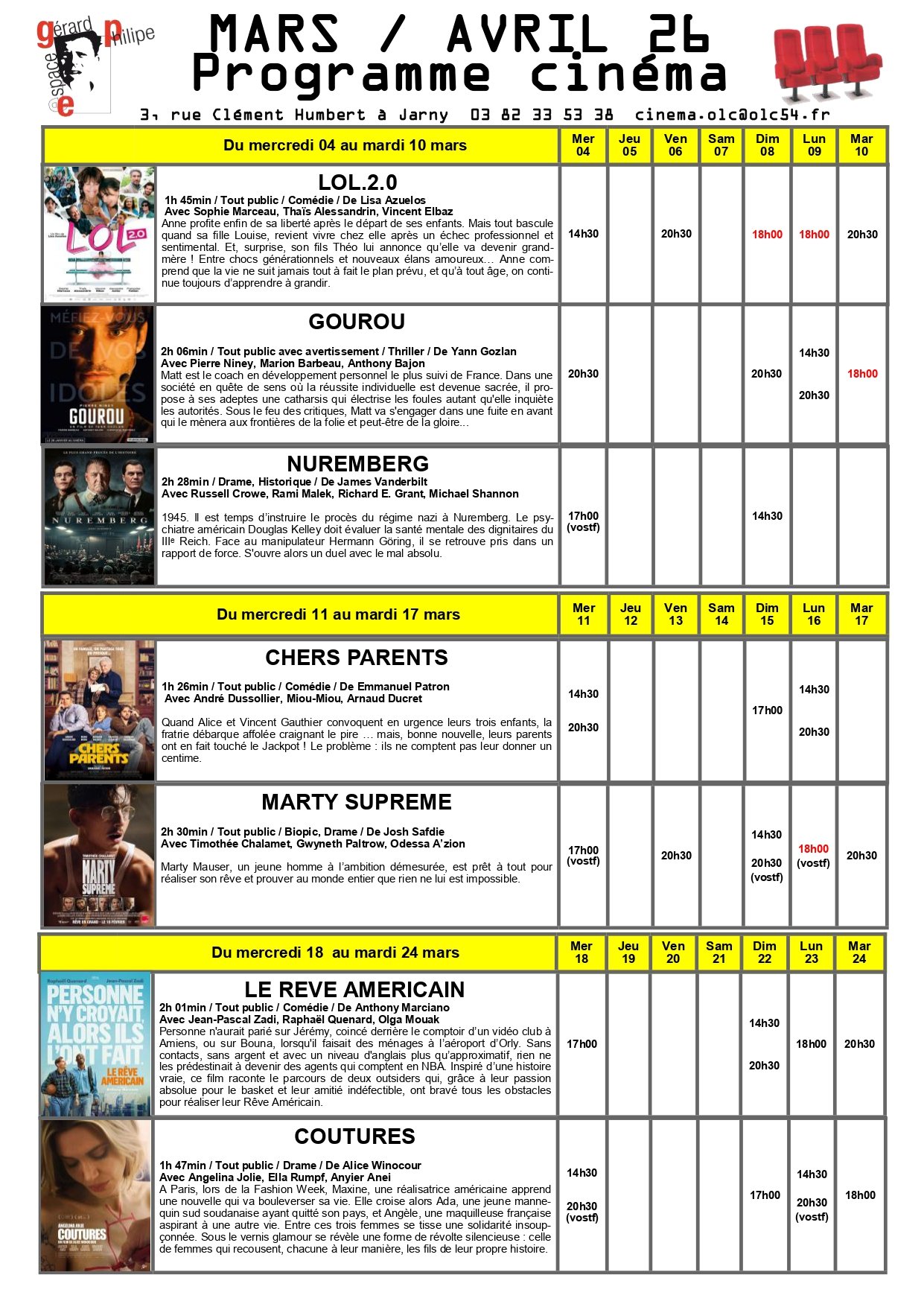 PROGRAMME CINÉMA EGP JARNY