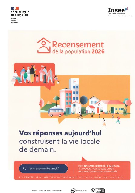 La Commune fera le recensement de la population 2026 à partir du 15 janvier jusqu'au 15 février.