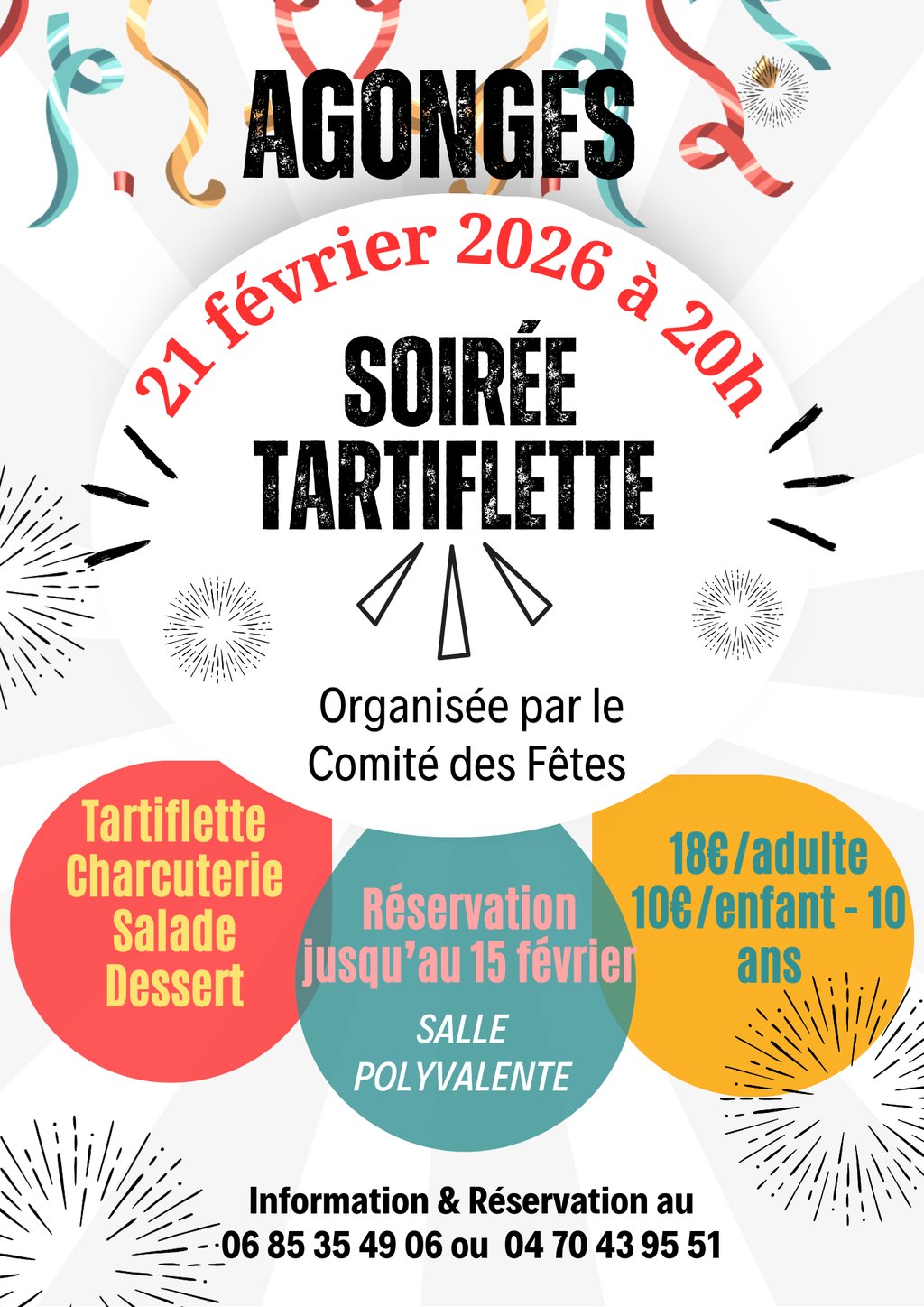 đVenez Ă la soirĂ©e organisĂ©e par le ComitĂ© des FĂȘtes d'Agonges le samedi 21 fĂ©vrier pour dĂ©guster une dĂ©licieuse tartiflette đ