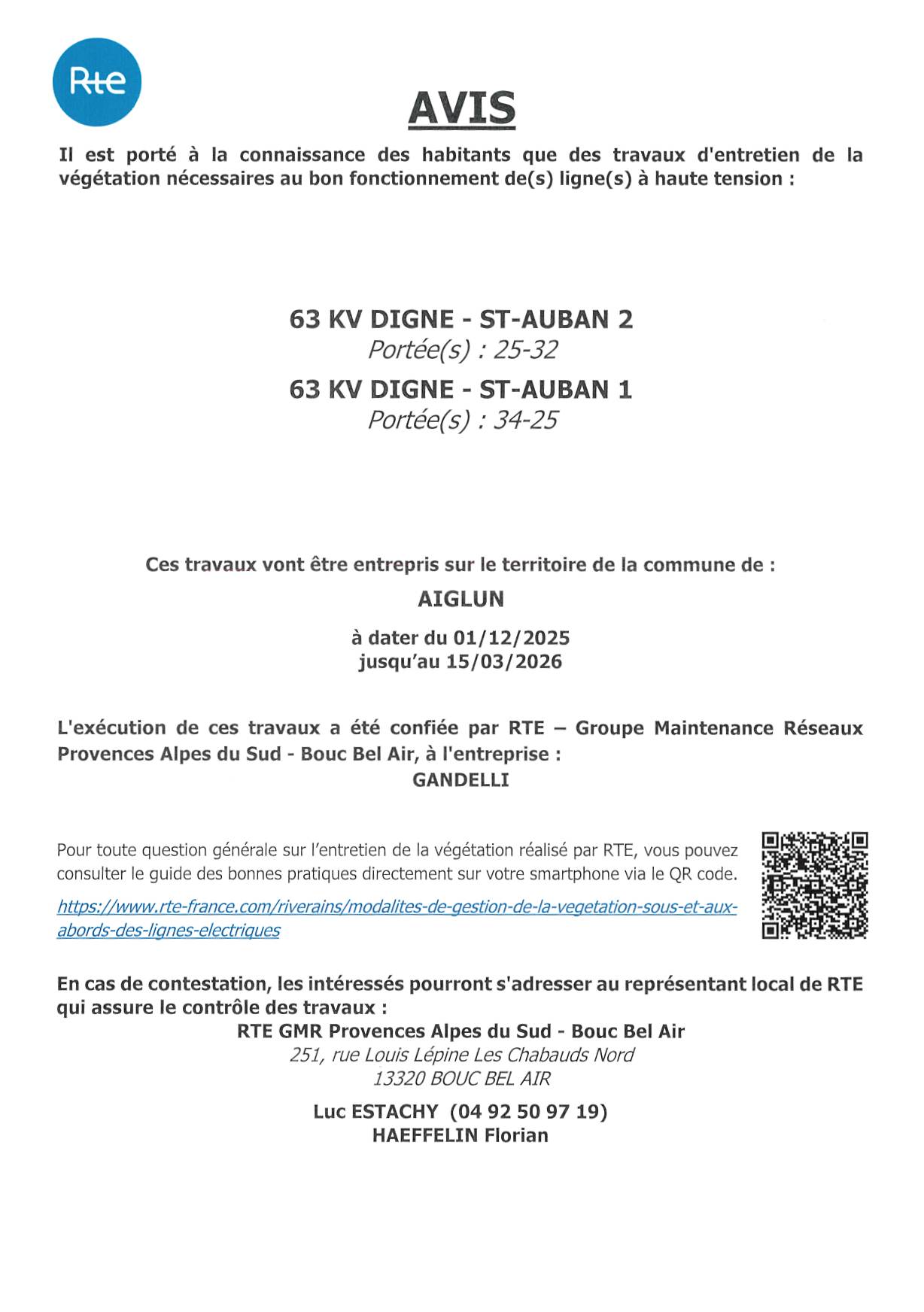 AVIS TRAVAUX RTE
