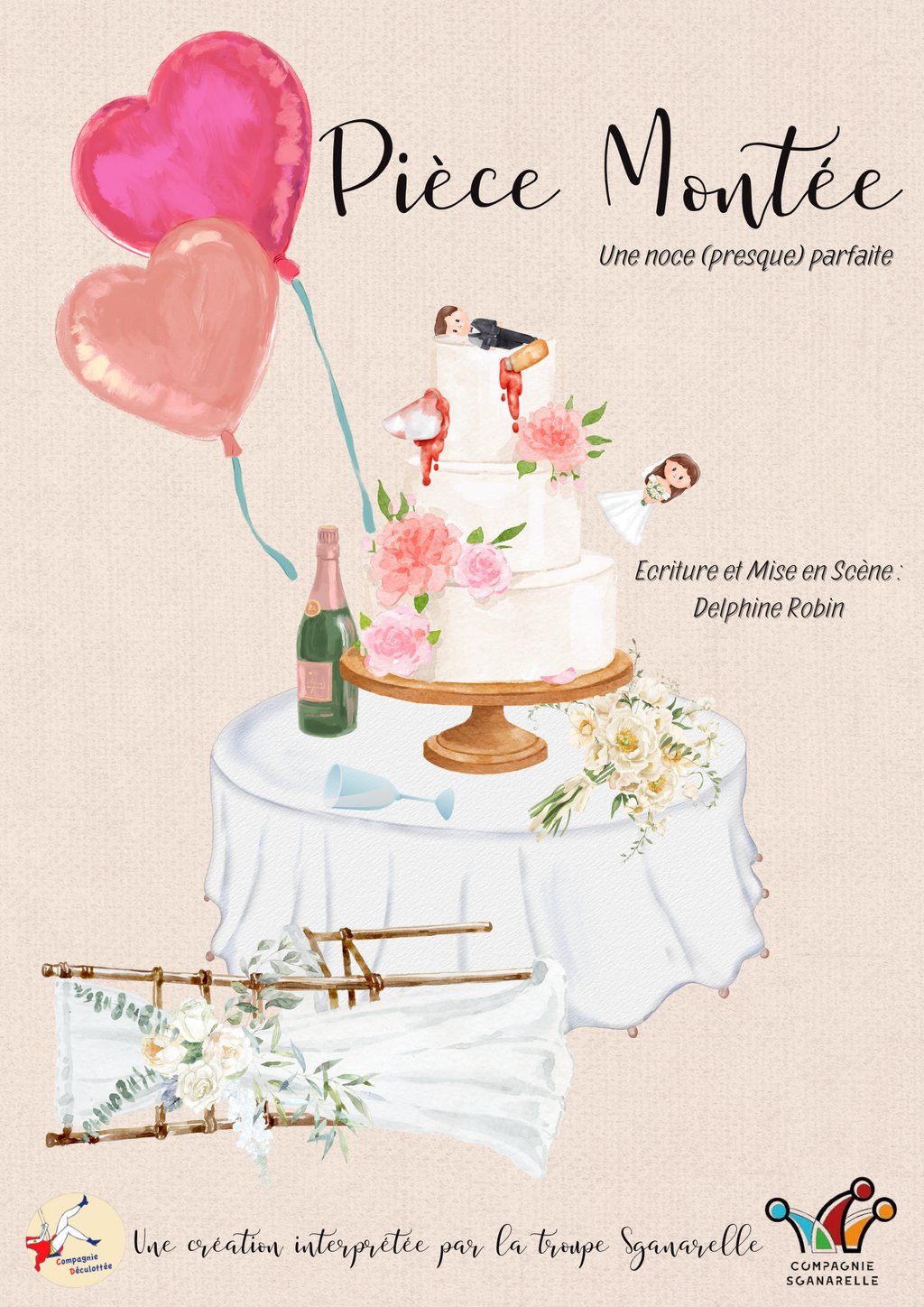 « Un mariage c’est le plus beau jour d’une vie…sauf quand tout dérape. Secrets, rancunes, confidences embarrassantes, verres qui se renversent…). Bienvenue dans Pièce Montée, une comédie tendre et acide où personne ne sort indemne de la fête.