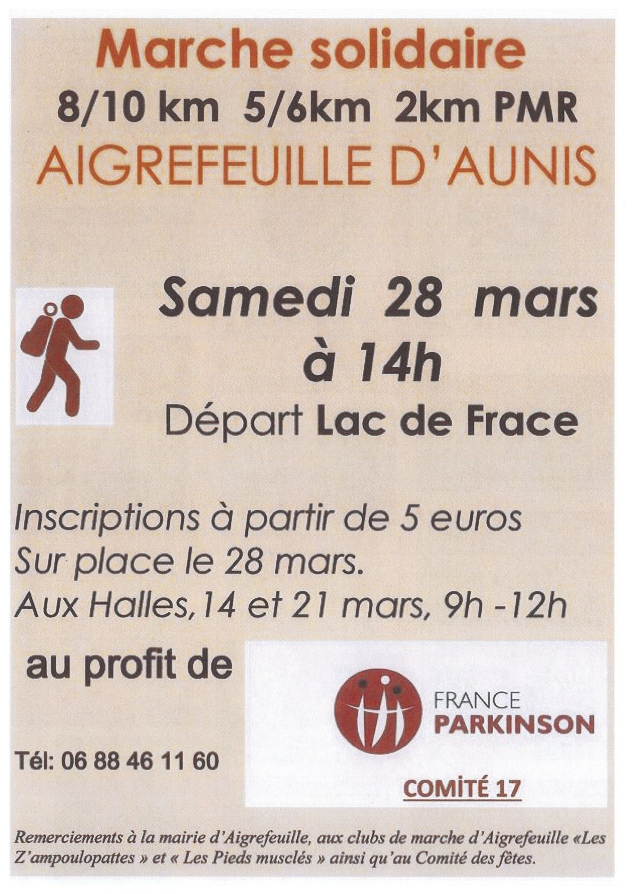 Marches au profit de l'association France Parkinson. Les bénéfices seront reversés à cette association.
