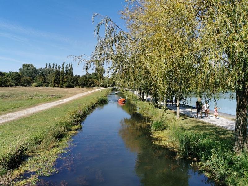 Au départ du parking, suivre le balisage jaune. Suivre tout droit le grand chemin longeant le lac jusqu’à la passerelle.