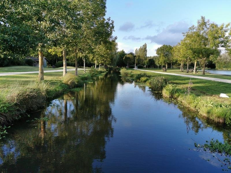 5. Avant d'arriver au 1er plan d'eau, franchir la passerelle sur le canal et suivre à droite un chemin longeant une rangée de peupliers. Virer à gauche et revenir au parking en passant entre le lac et le ruisseau canalisé "le Curé".