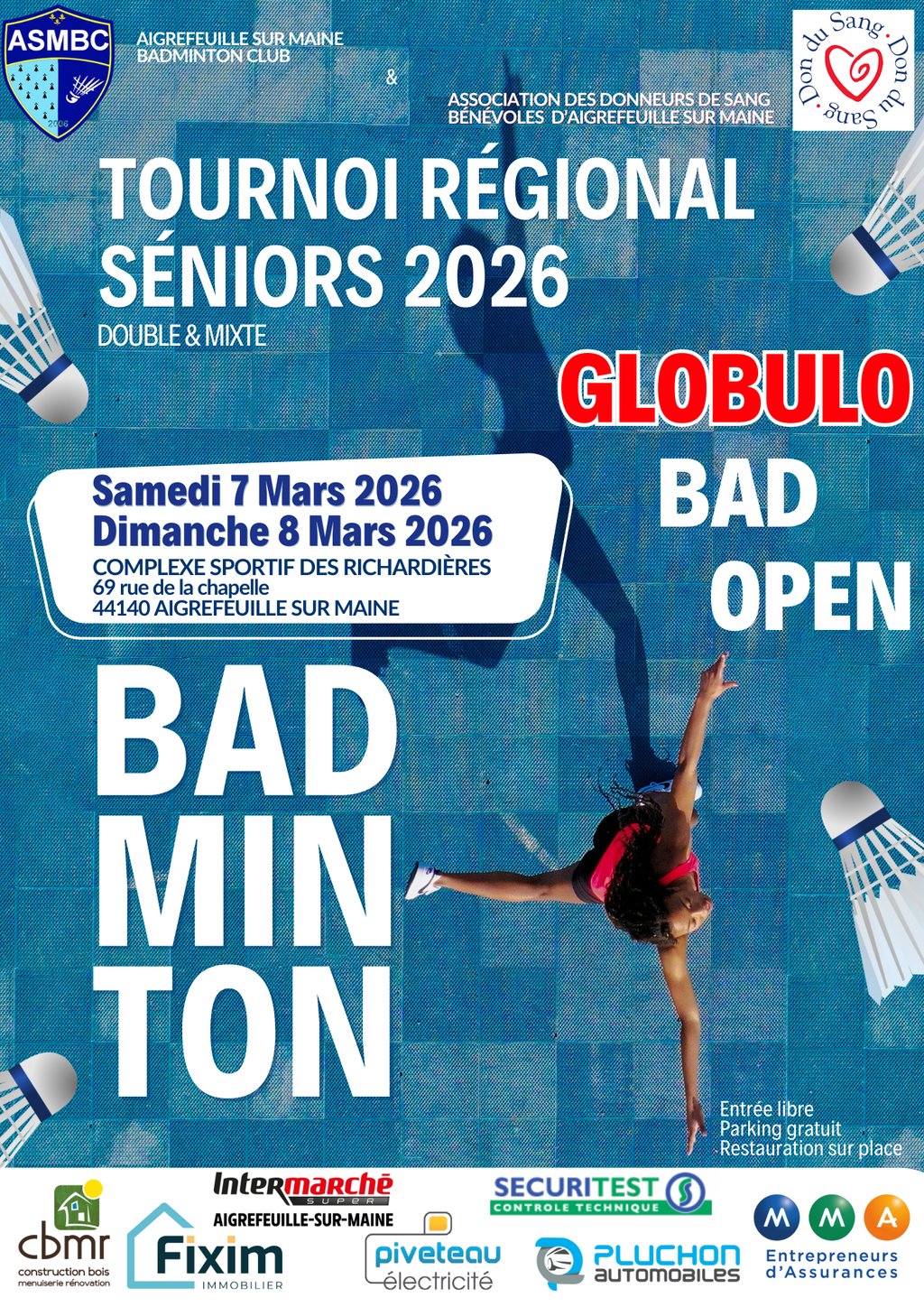 Tournoi régional senior de badminton en double (hommes/dames/mixtes)