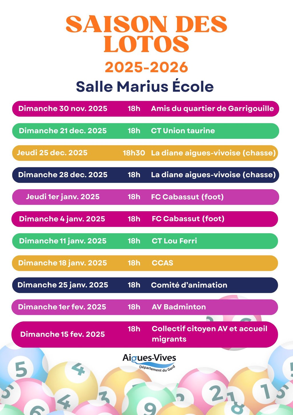 Découvrez dÚs maintenant le calendrier des prochains lotos qui animeront notre commune tout au long de la saison !