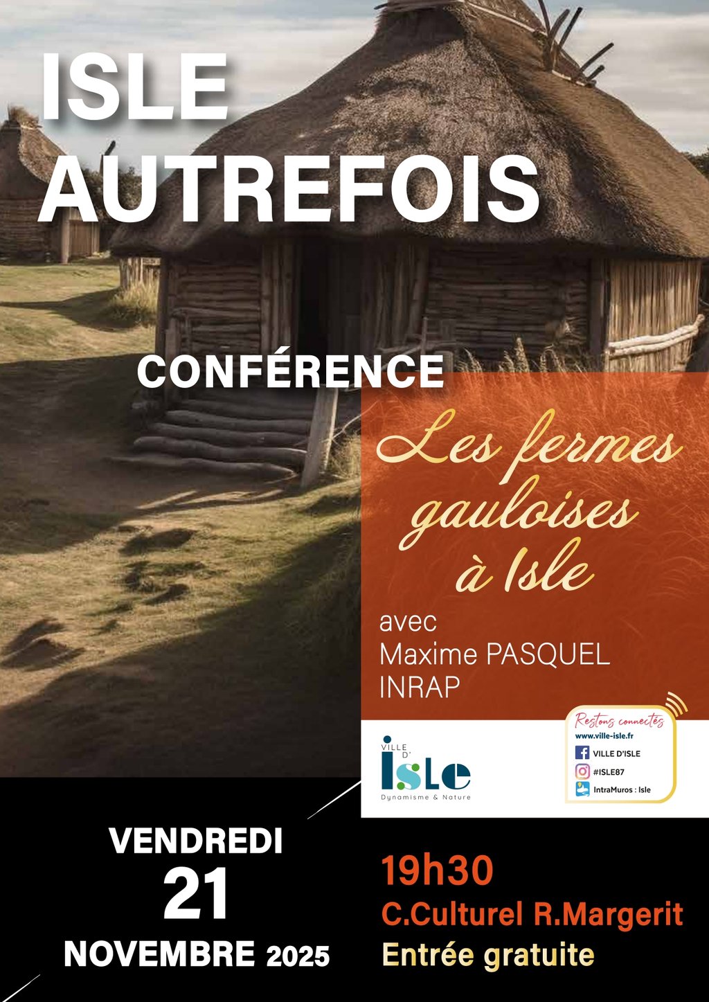 Au cours de cette soirée historique, les bénévoles du groupe Isle Autrefois de la Mairie d’Isle, vous convient à une conférence sur les fermes gauloises isloises.
