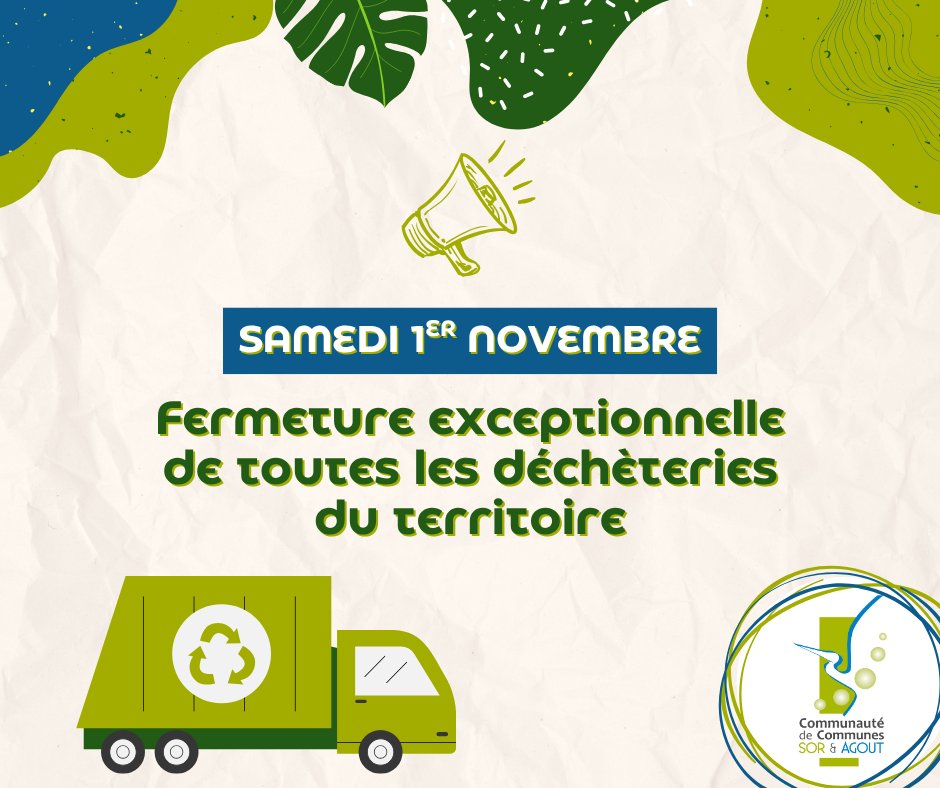 Les déchèteries du territoire seront exceptionnellement fermées samedi 1er novembre.