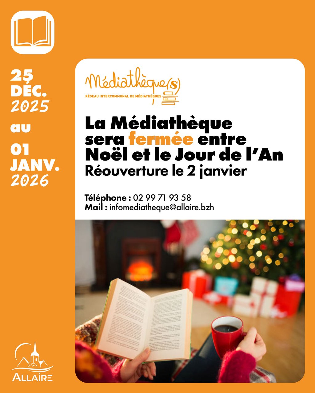La Médiathèque sera fermée entre Noël et le Jour de l'An