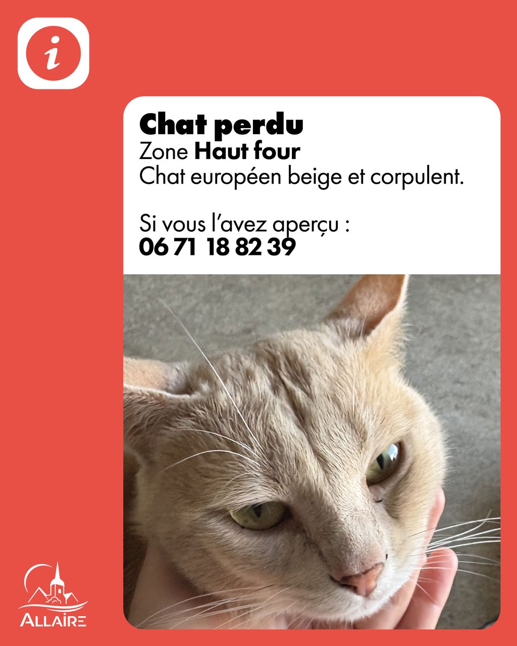 Si vous l’avez aperçu ou recueilli, merci de contacter la propriétaire dès que possible :