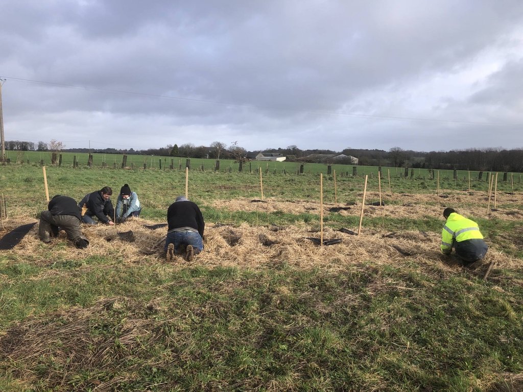 Encore un beau chantier participatif organisé par le collectif "haies et bocage" avec 260 arbustes plantés et environ 250 m de linéaires en épis dans le but de favoriser un ruissellement vers le verger de conservation de Coueslé, tout en le protégeant des vents.