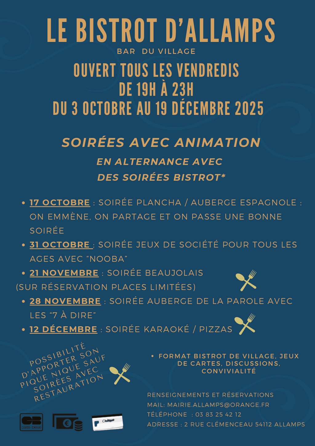 LE BISTROT D’ALLAMPS, RÉOUVERTURE, programme