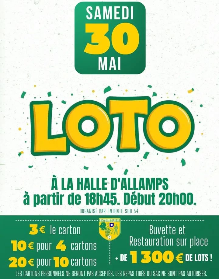 *Un samedi soir super sympa , alors L'ENTENTE SUD 54 vous propose un super loto