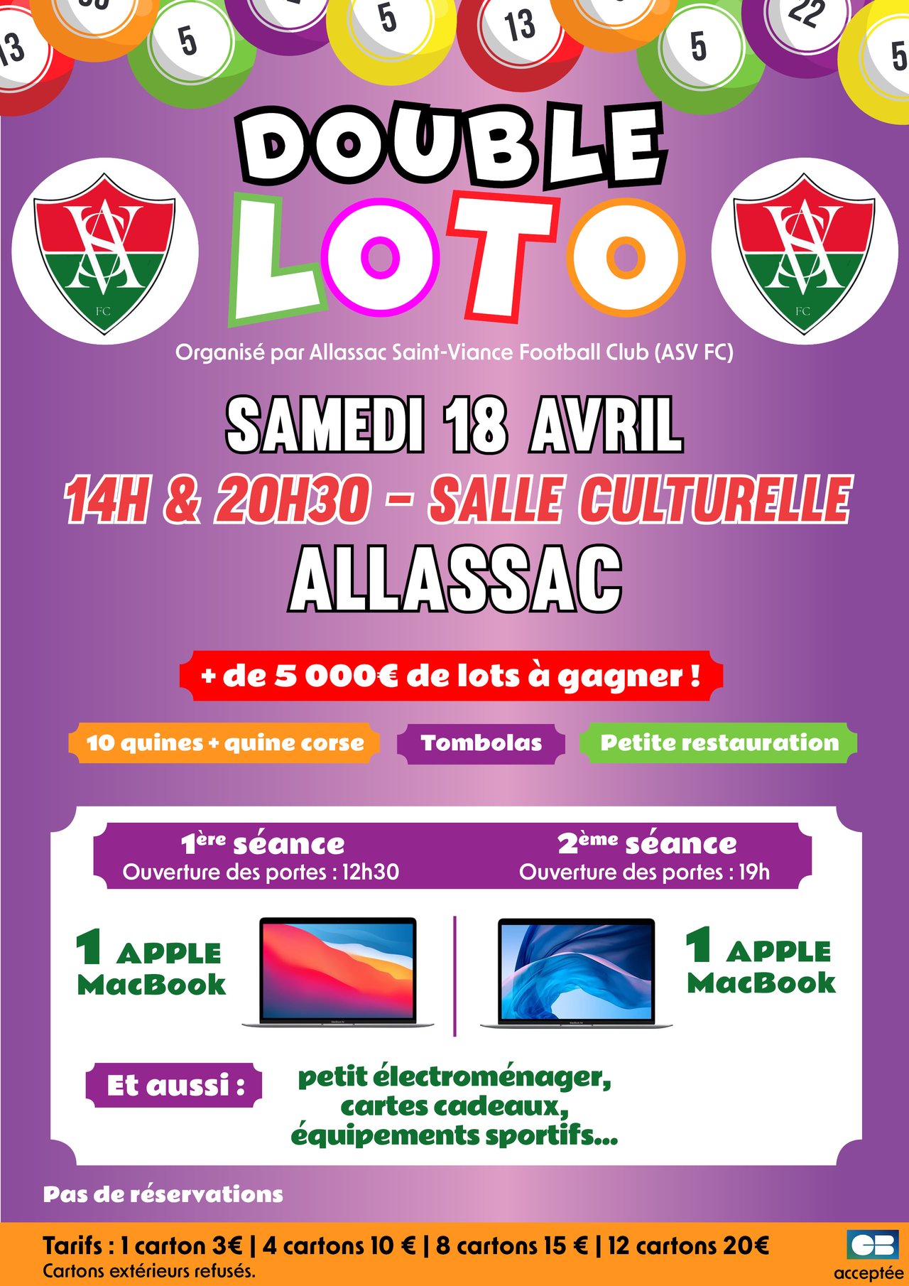 Samedi 18 avril, Allassac Saint-Viance Football Club (ASV FC) organise son grand loto à la salle culturelle d’Allassac.