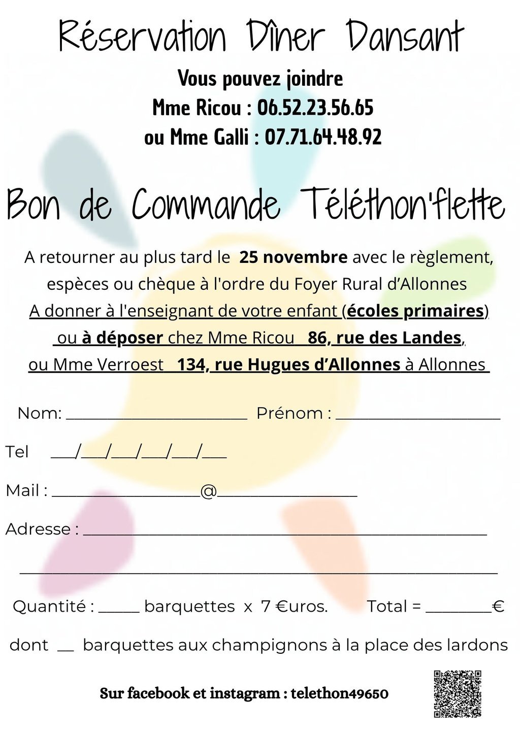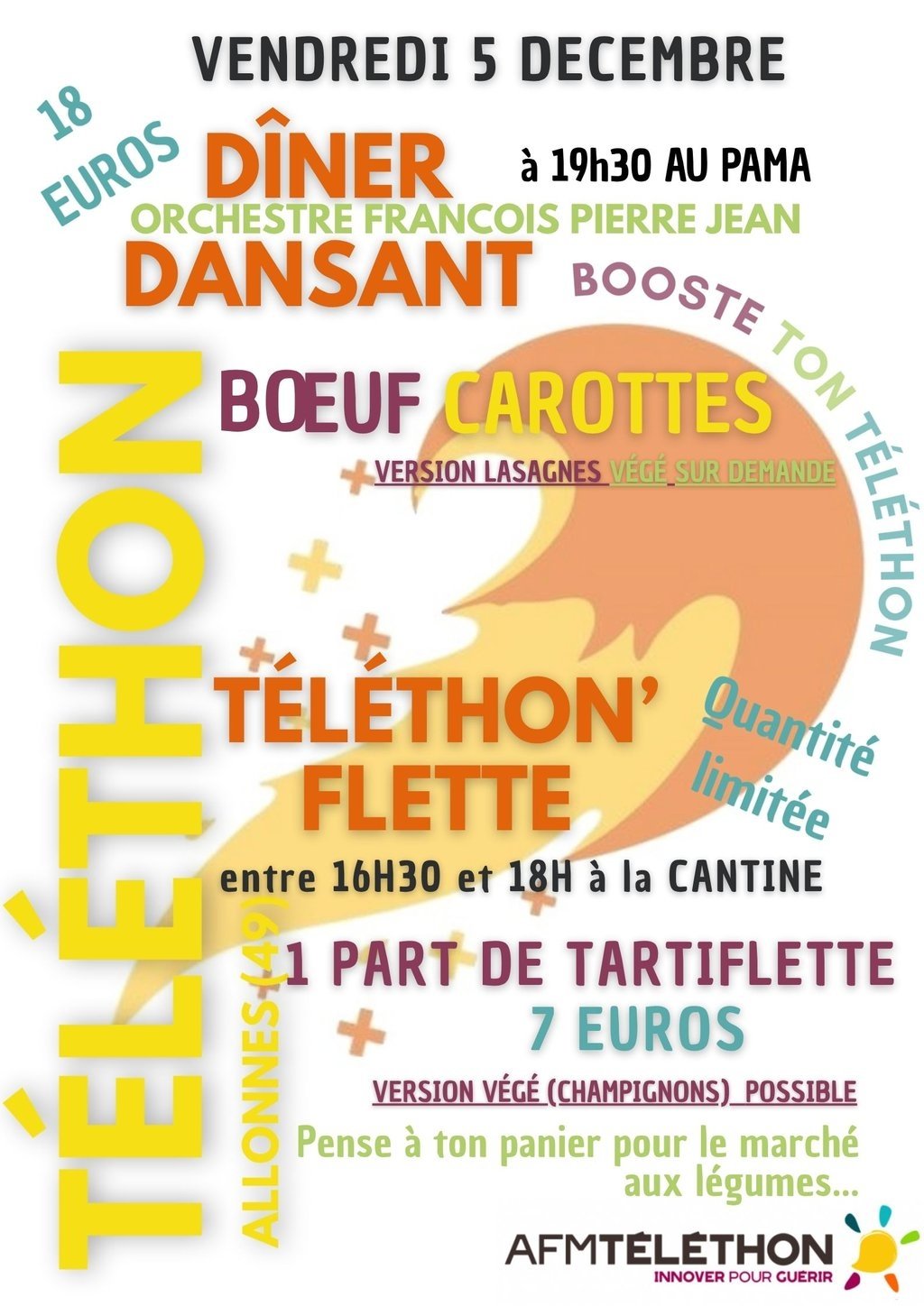 Vendredi 5 décembre : Dîner dansant au PAMA + Téléthon’flette (sur réservation)