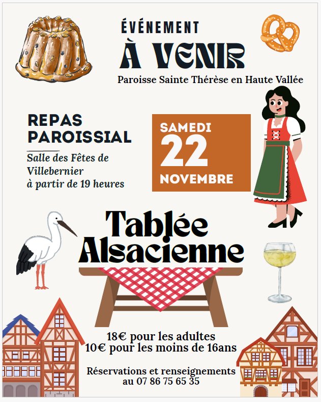 REPAS PAROISSIAL le samedi 22 novembre à la salle des Fêtes de Villebernier à partir de 19 heures organisé par la Paroisse Sainte Thérèse en Haute Vallée