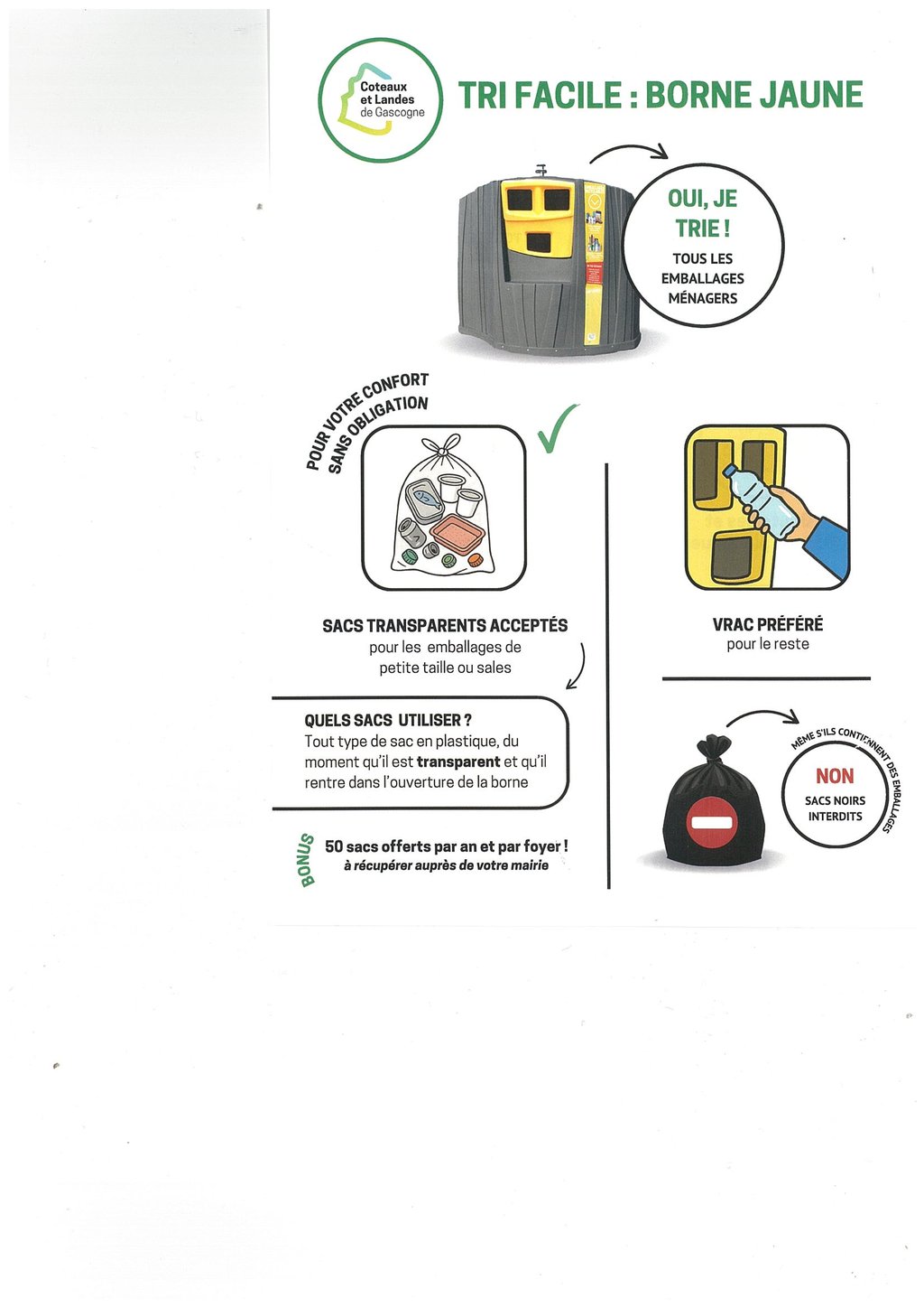 Nous vous informons de la campagne de distribution des sacs jaunes pour les foyers de notre commune.