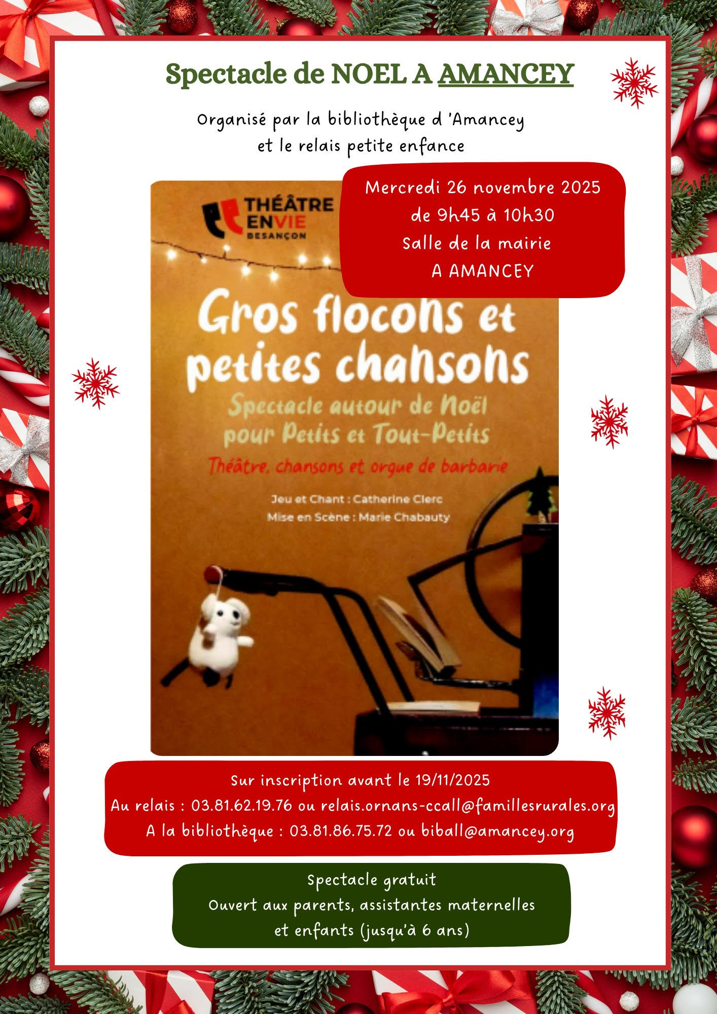 Spectacle de Noël pour les moins de 6 ans à Amancey, mercredi 26 novembre à 9h45.