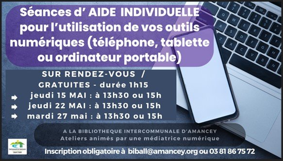 - Ateliers aide individuelle pour l’utilisation de vos outils numériques (téléphone, tablette ou ordinateur portable