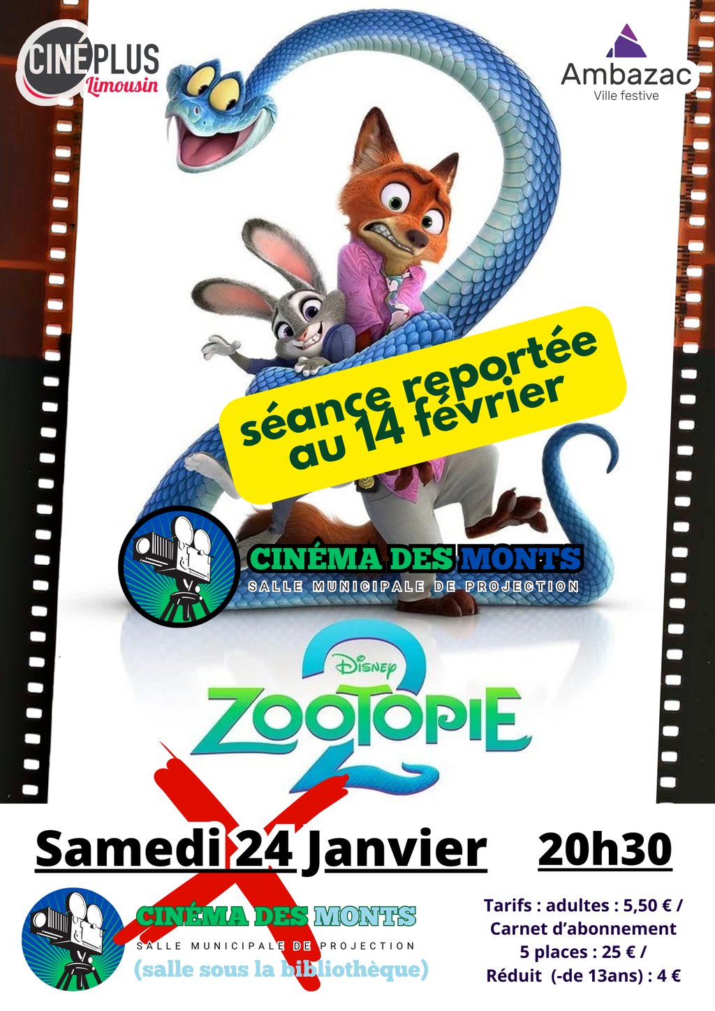 ANNULATION DE LA SÉANCE DE CINÉ PLUS "ZOOTOPIE 2", CE SOIR