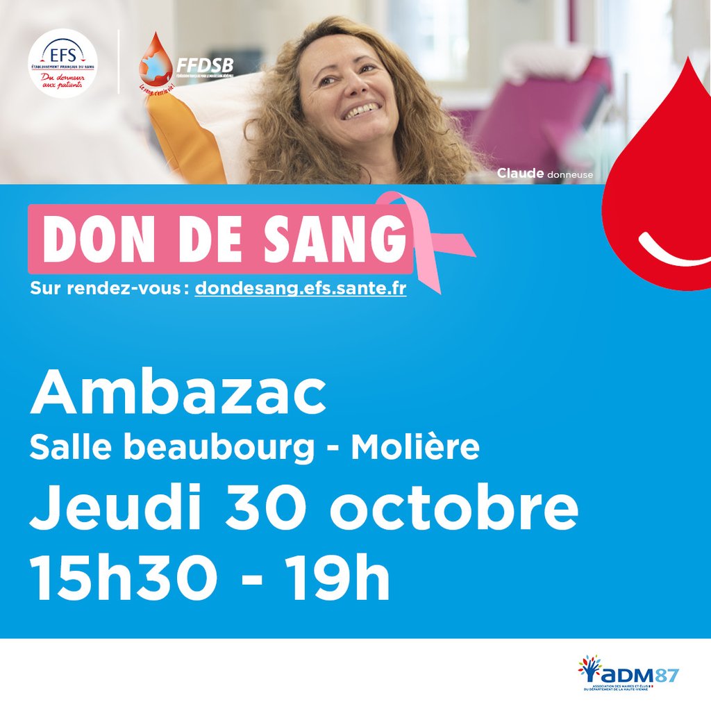 Jeudi 30 Octobre, entre 15h30 et 19h, à l'Espace du Mont Gerbassou (salle Beaubourg), rue Anna Beillot, une collecte de sang est organisée par l’Etablissement Français du Sang.