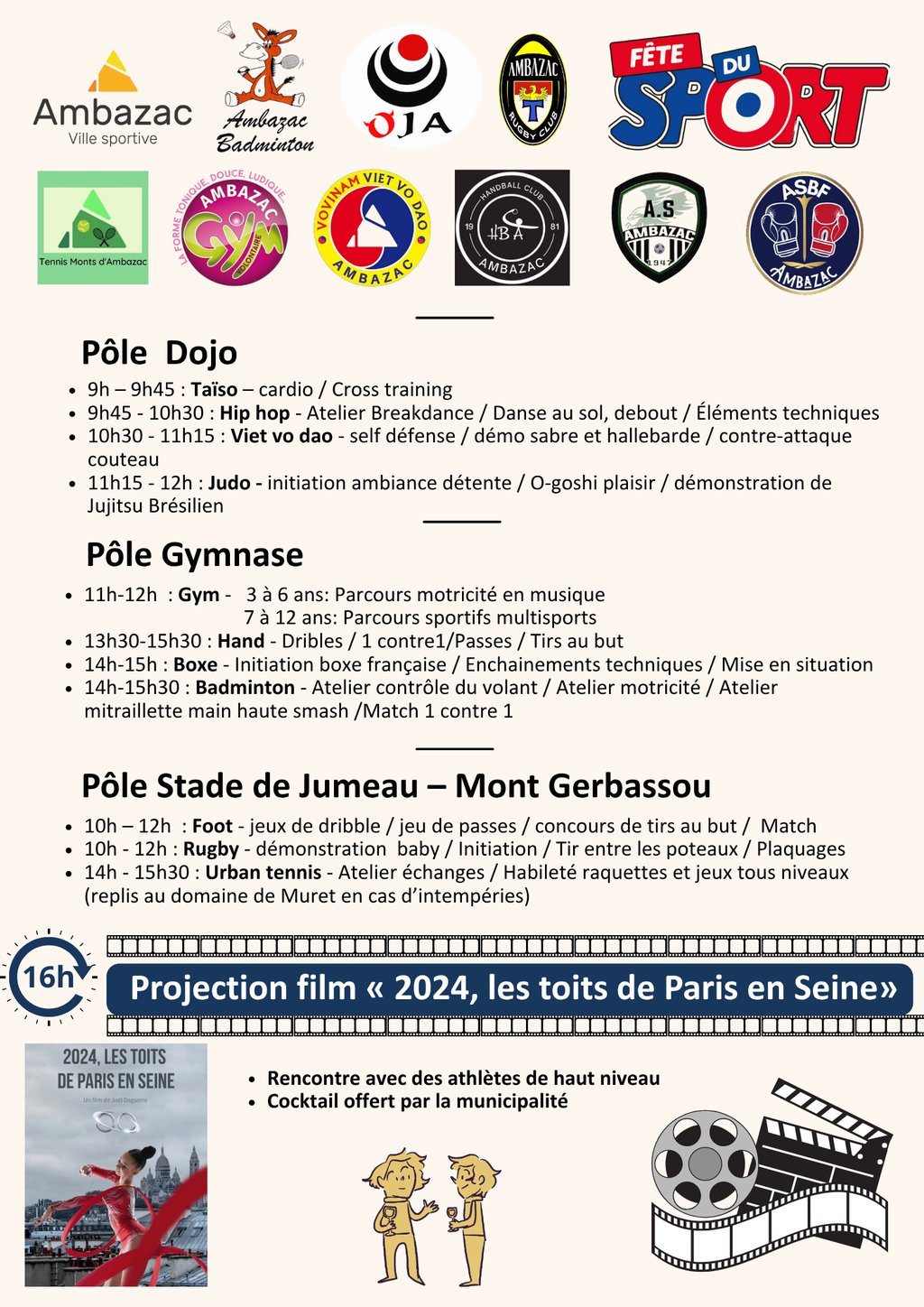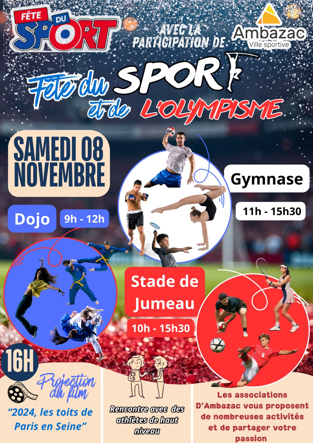 À Ambazac, des associations sportives se sont regroupées et ont choisi le samedi 8 Novembre pour célébrer tout ce que le sport et l’activité physique nous apportent au quotidien : le bien-être physique et mental, la confiance en soi, le respect de l’autre, le goût du partage et l’esprit de solidarité.