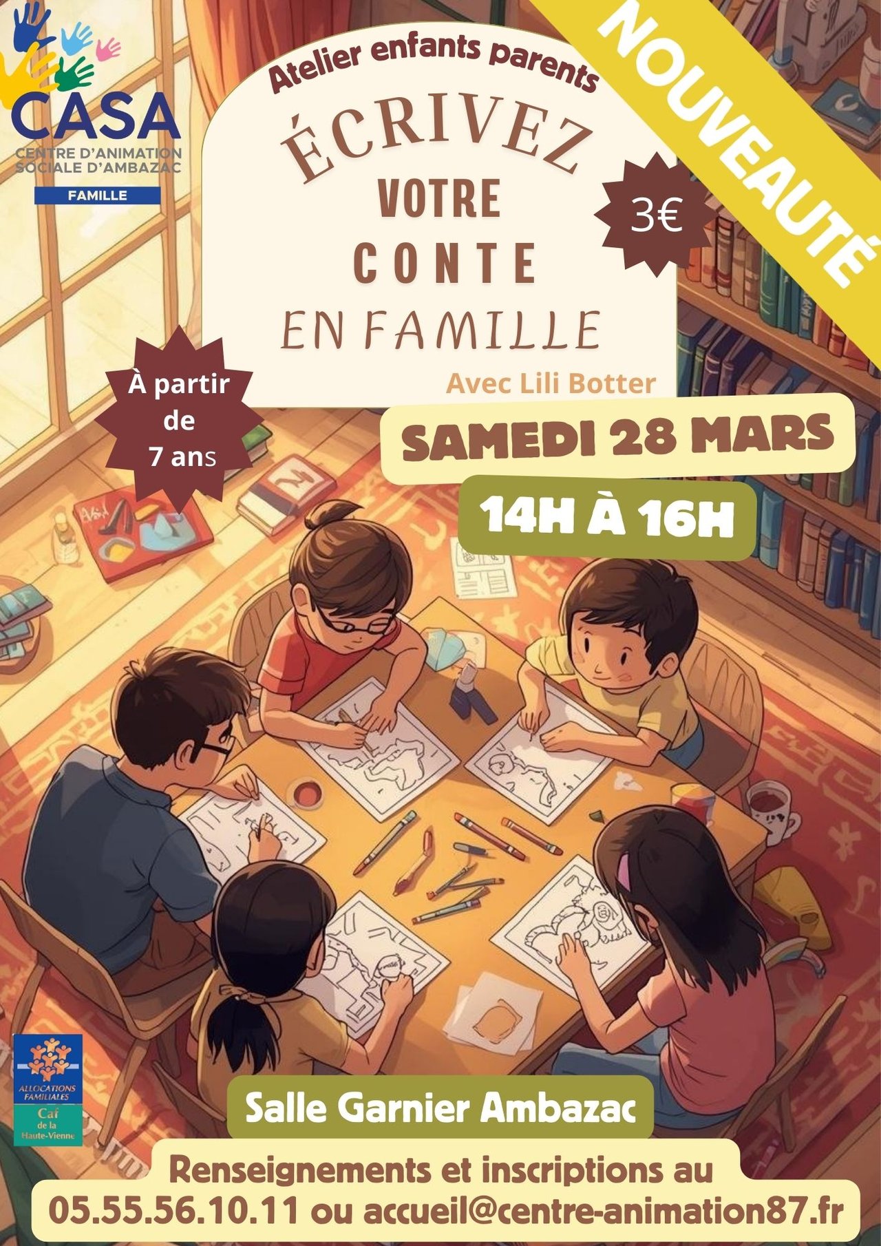 Le Centre d'Animation Sociale Ambazac vous invite à partager un moment privilégié avec vos enfants lors de l’atelier : « Créons notre conte en famille », animé par la comédienne Lili Botter.