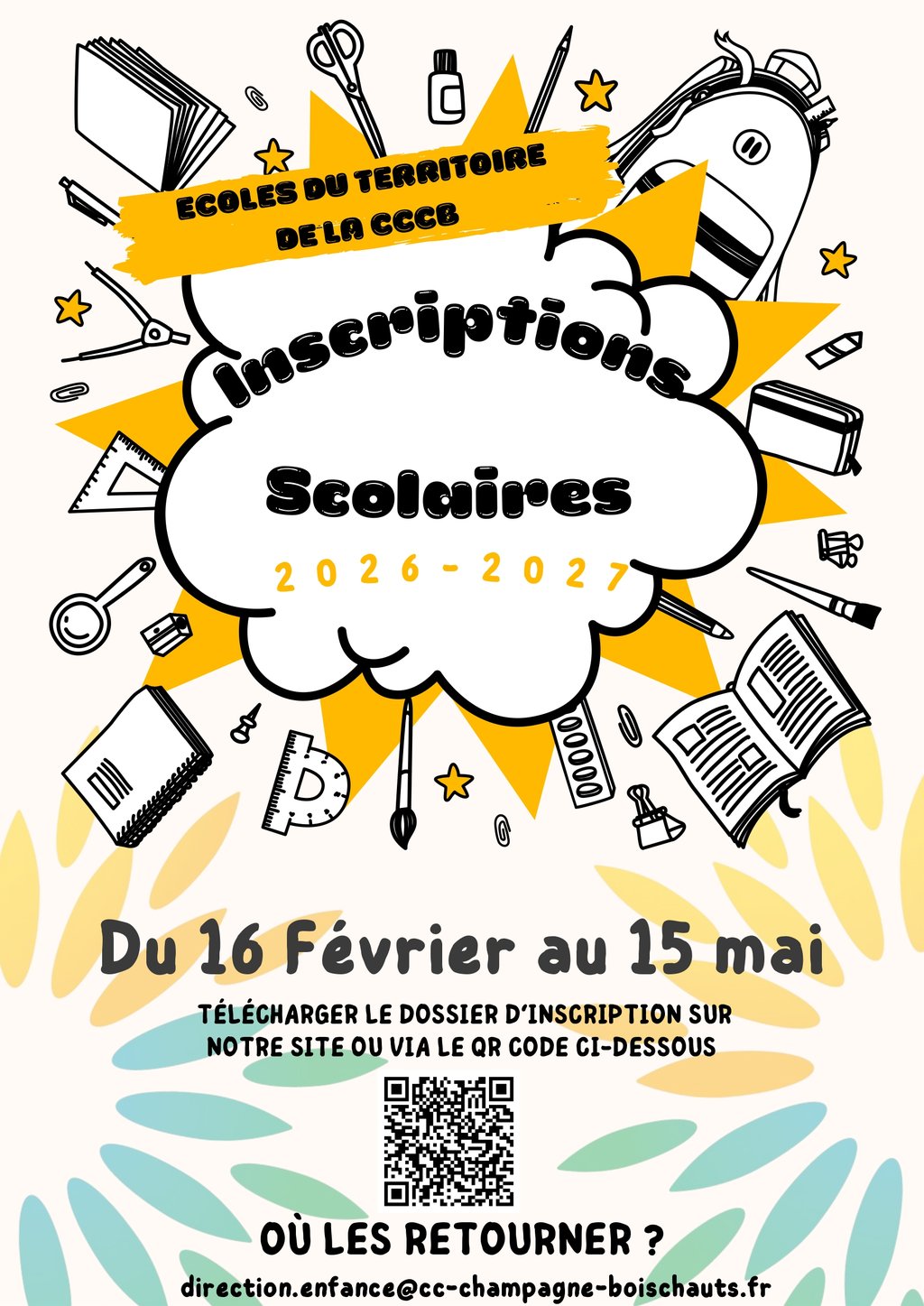Les inscriptions scolaires pour la rentrée 2026-2027 sont ouvertes jusqu'au 15 mai 2026 (vous trouverez en pièce jointe le dossier à télécharger)