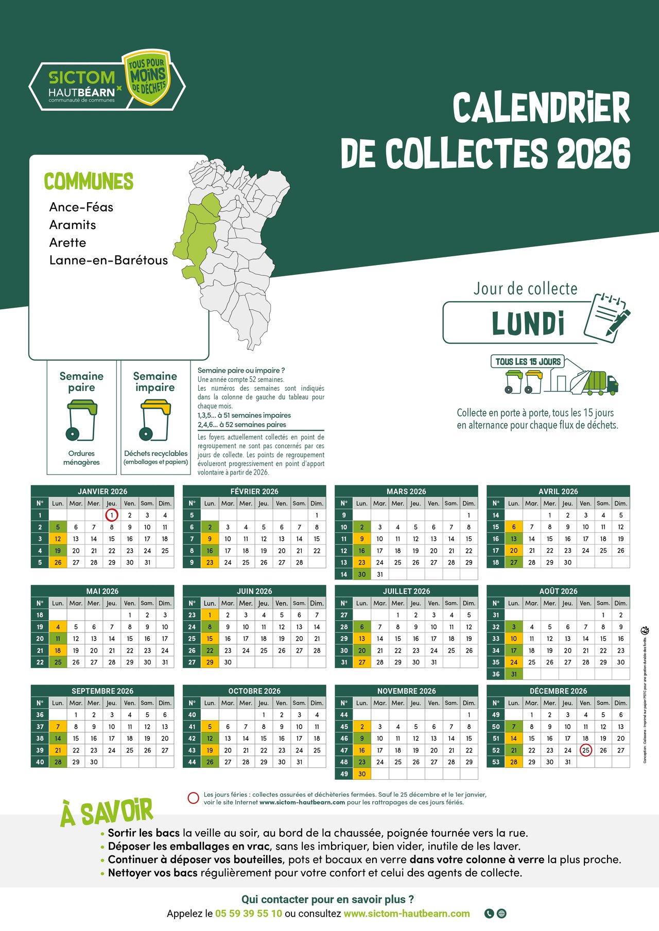 CALENDRIER DE COLLECTE DES DECHETS 2026