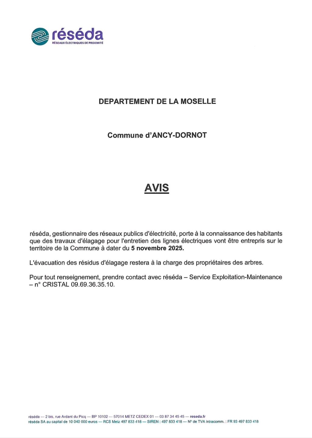 Des travaux d'élagage pour l'entretien des lignes électriques vont être réalisés sur Ancy-Dornot à compter du 5 novembre.