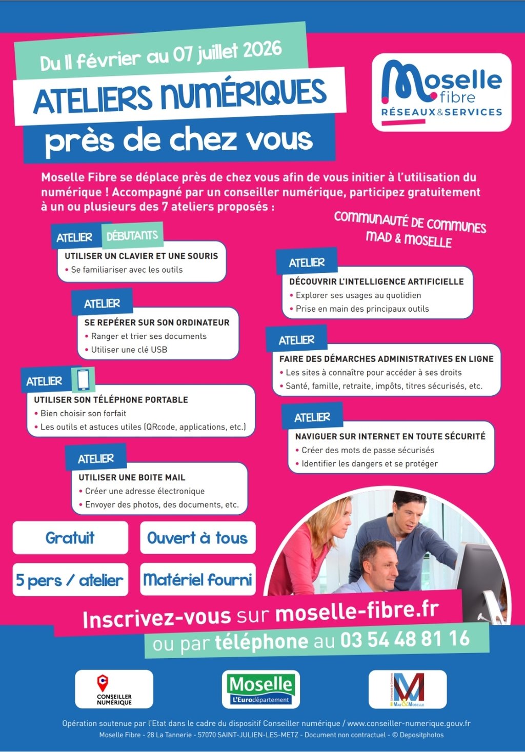 En collaboration avec la Communauté de Communes Mad & Moselle, Moselle Fibre vous propose des ateliers pour vous initier à l’utilisation du numérique.