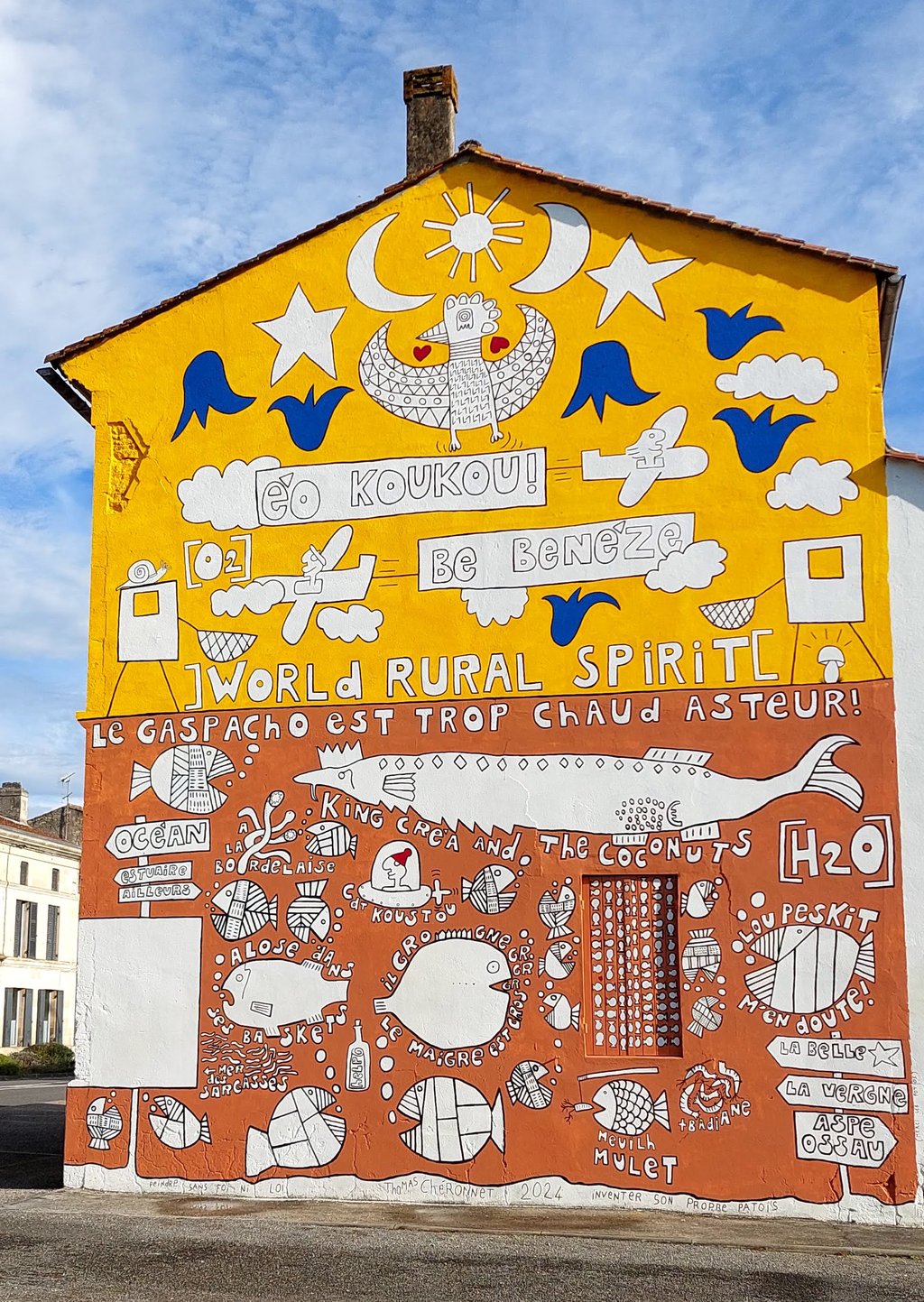 Fresque réalisée par Thomas Cheronnet sur le mur du bâtiment des fils d'Argent en 2024.