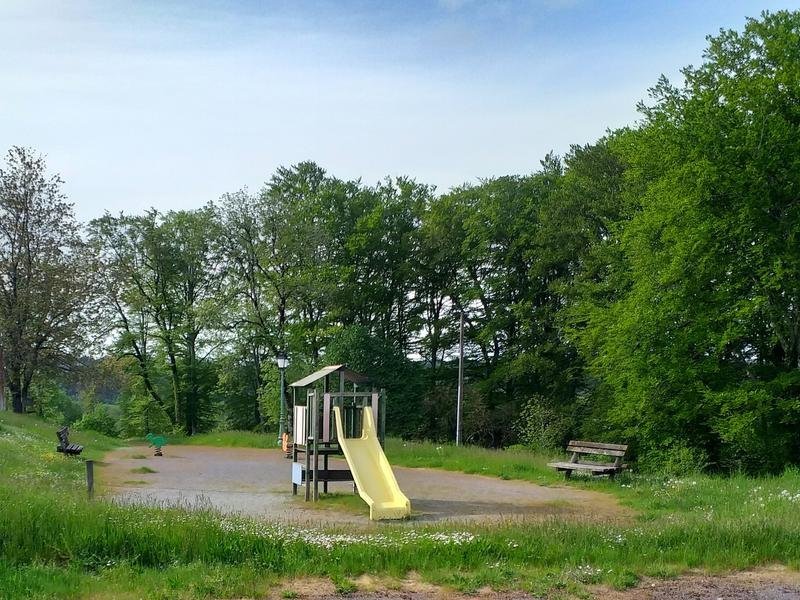 Des bancs sont là pour accueillir tes parents pendant que tu t'amuses avec tes copains! Balançoire et tobogan sont à ta disposition.
