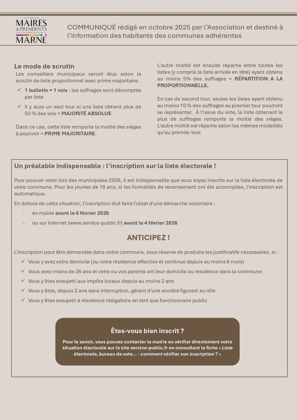 INFORMATION ELECTIONS MUNICIPALES 2026