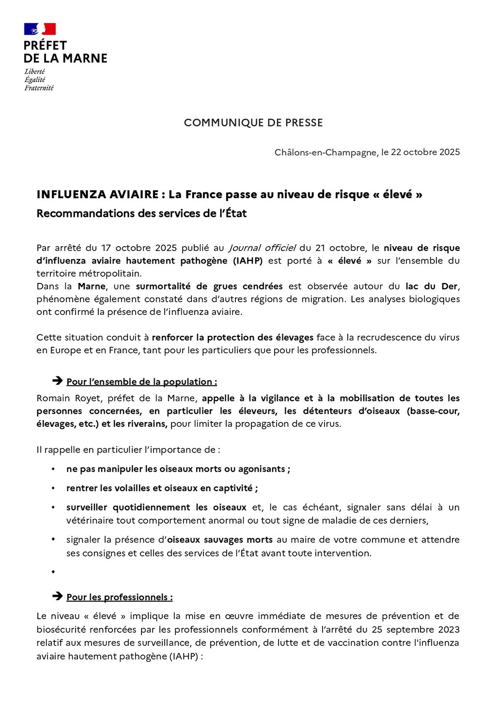 INFLUENZA AVIAIRE - RISQUE ÉLEVÉ - RE...