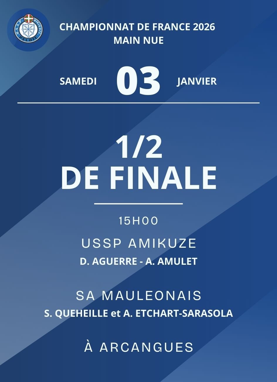 Pelote basque - USSP Amikuze en 1/2 de Finale du Championnat de France 2026 Main Nue