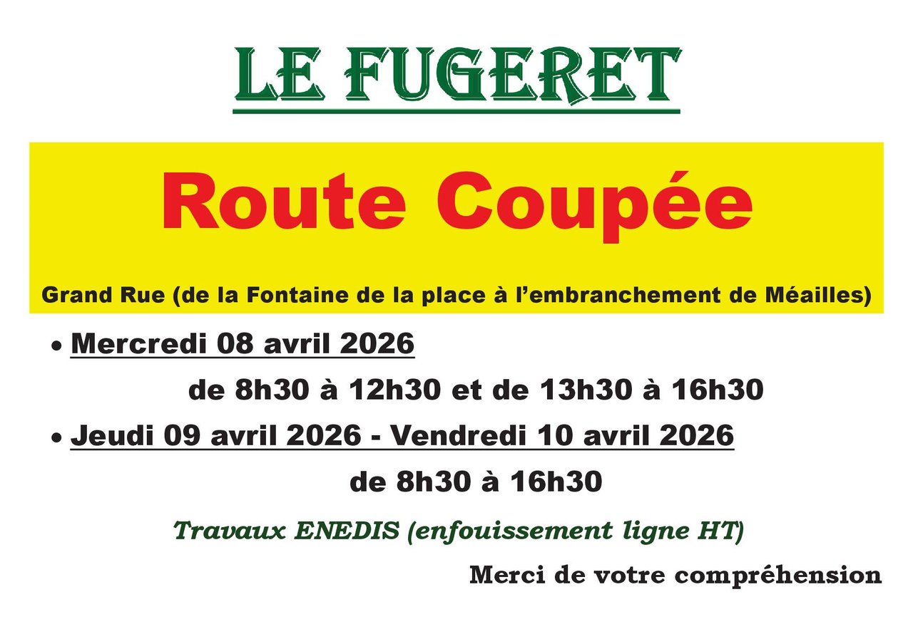 🚧 INFO CIRCULATION – LE FUGERET 🚧