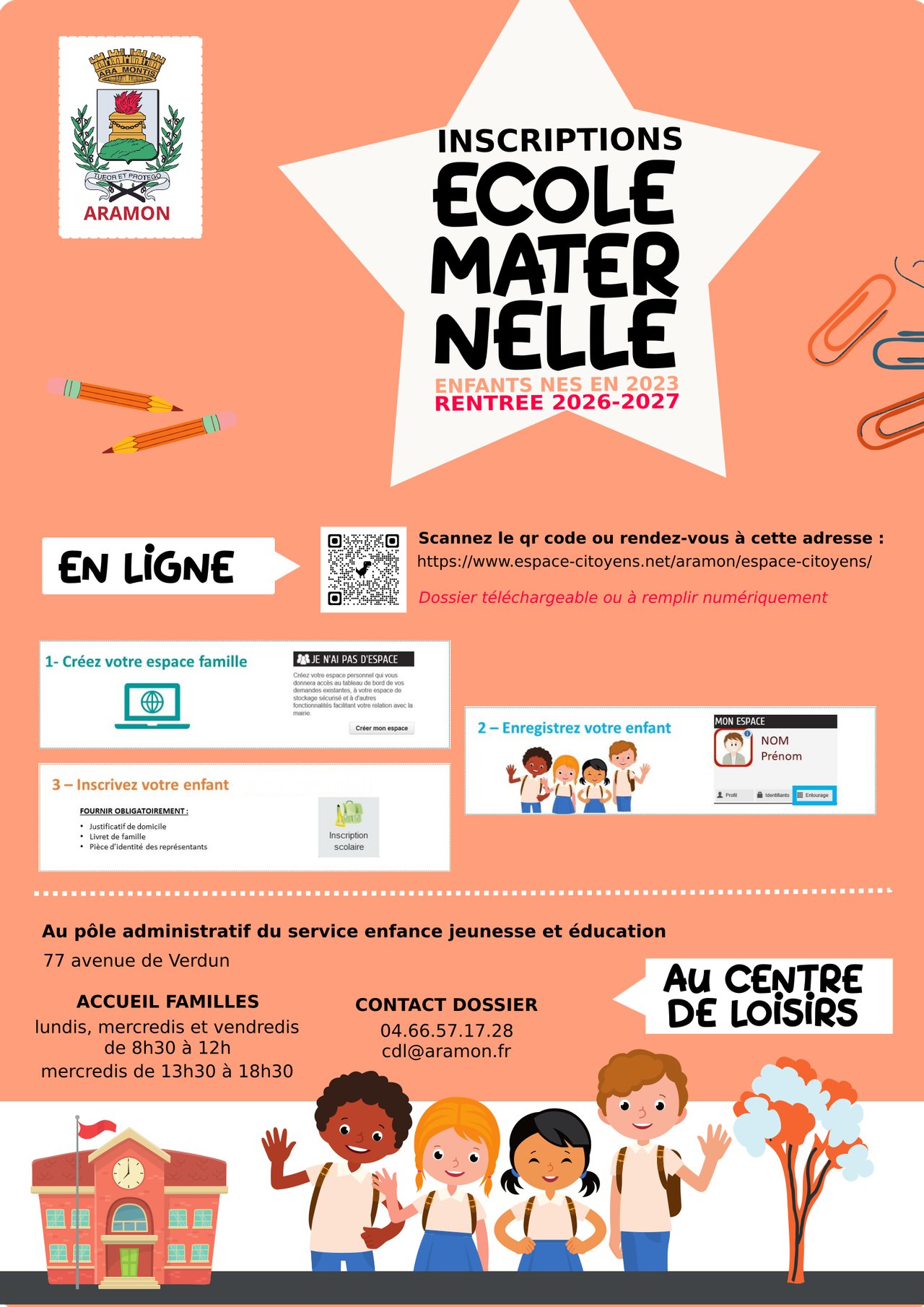 Les inscriptions sont ouvertes pour les enfants nés en 2023 qui feront leur entrée en petite section à la rentrée de septembre 2026.