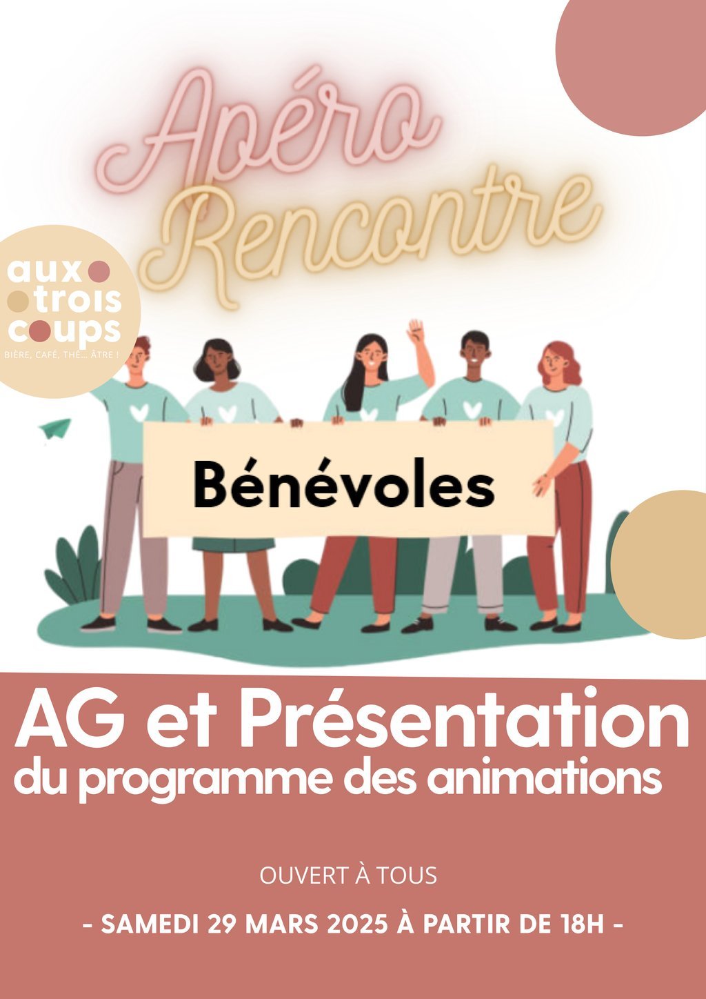À l’issue de l’Assemblée Générale, nous vous proposons de prolonger les échanges lors d’un apéro rencontre avec les bénévoles. Un moment chaleureux et informel, fidèle à l’esprit du café associatif, pour faire connaissance, discuter et partager autour d’un verre.