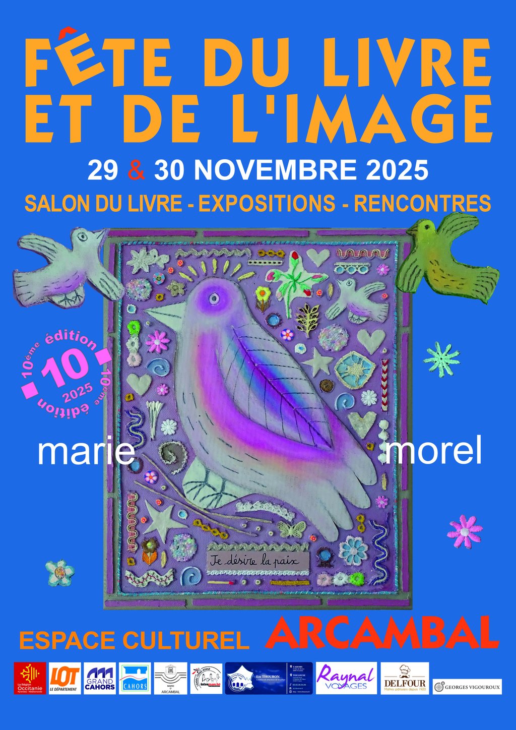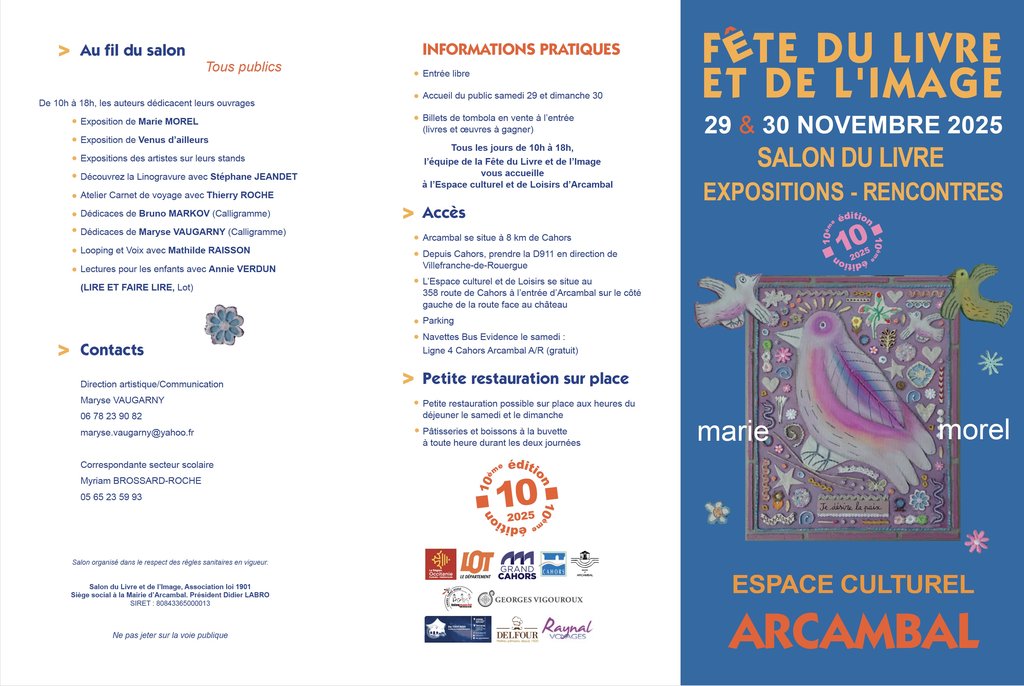 Nous avons le plaisir de vous convier à la 10ème édition de la Fête du Livre et de l'Image le samedi 29 et dimanche 30 novembre 2025 de 10 à 18h à l'Espace Culturel et de Loisirs d'Arcambal.