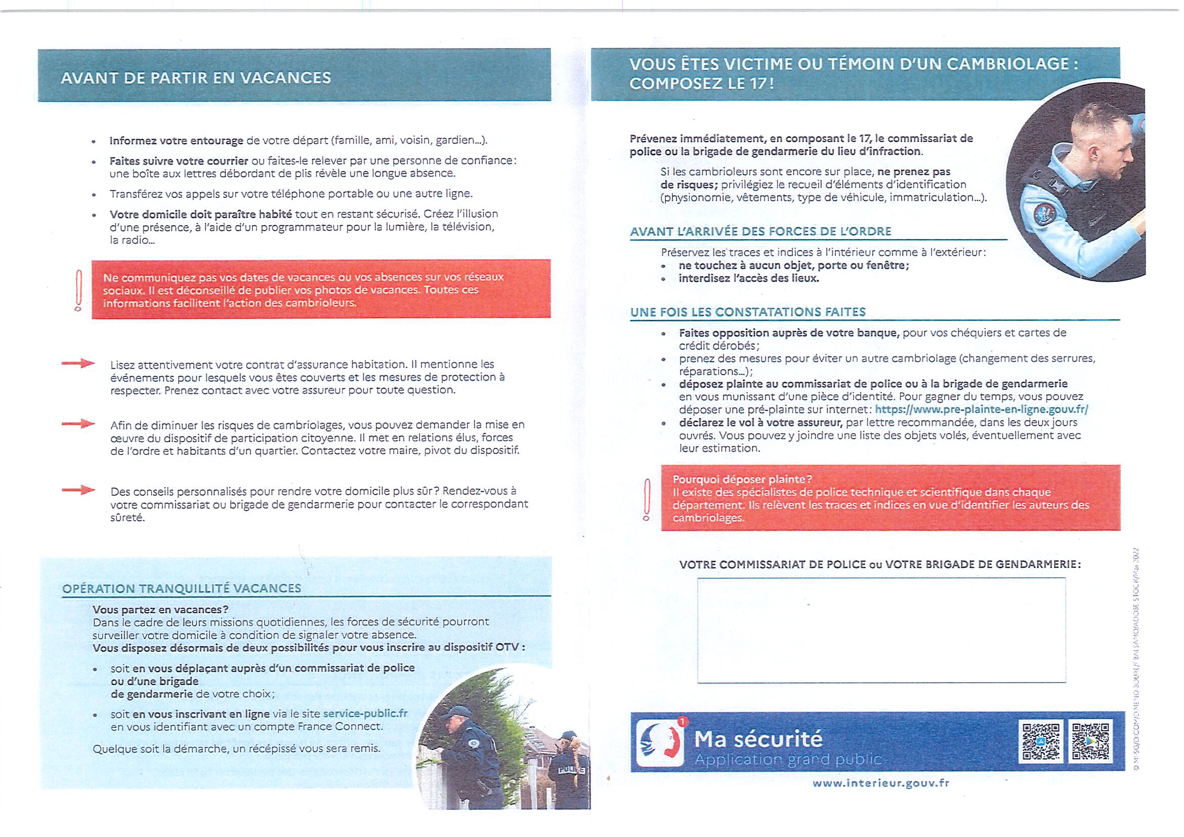 Vous trouverez en pièce jointe les recommandations suite à la réunion publique du 29 janvier réalisée par les gendarmes.