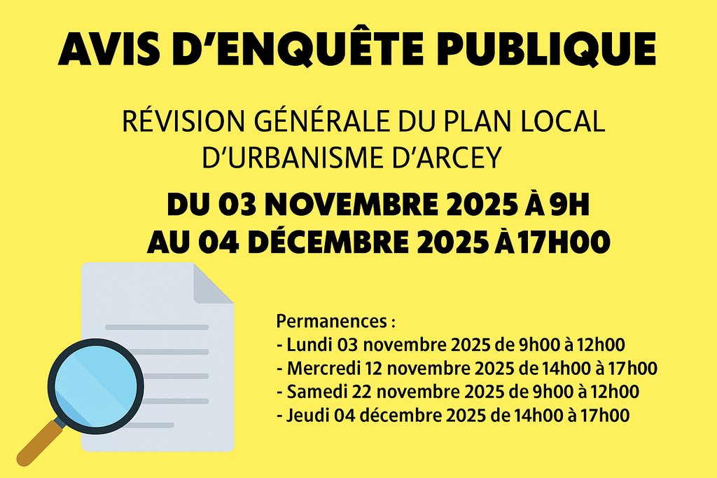 ARCEY PRÉPARE SON AVENIR : OUVERTURE DE L’ENQUÊTE PUBLIQUE SUR LE PLU