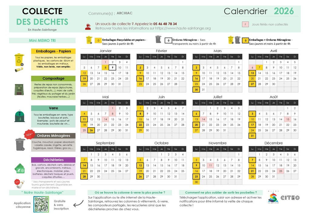 COLLECTE DES DECHETS - CALENDRIER 2026