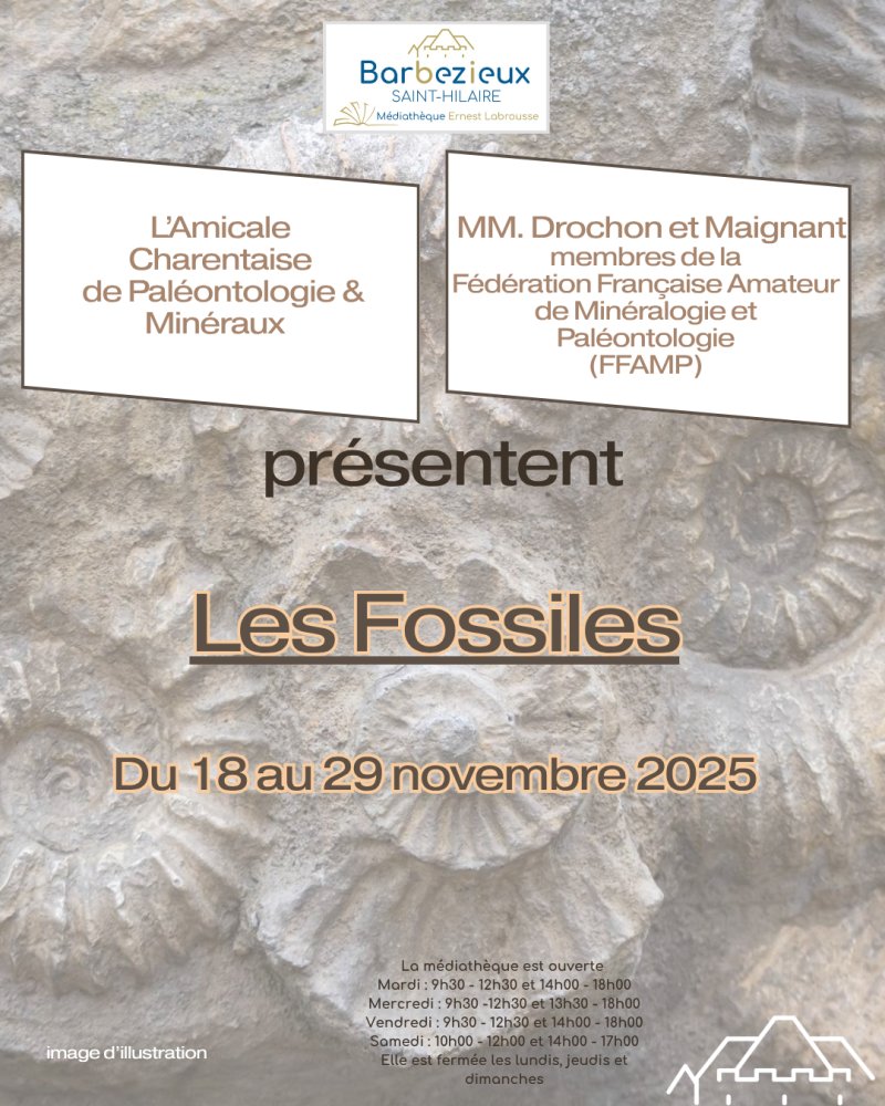 Une exposition créée par les membres de L’Amicale Charentaise de Paléontologie & Minéraux et MM. Drochon et Maignant, membres de la Fédération Française Amateur de Minéralogie et Paléontologie (FFAMP)