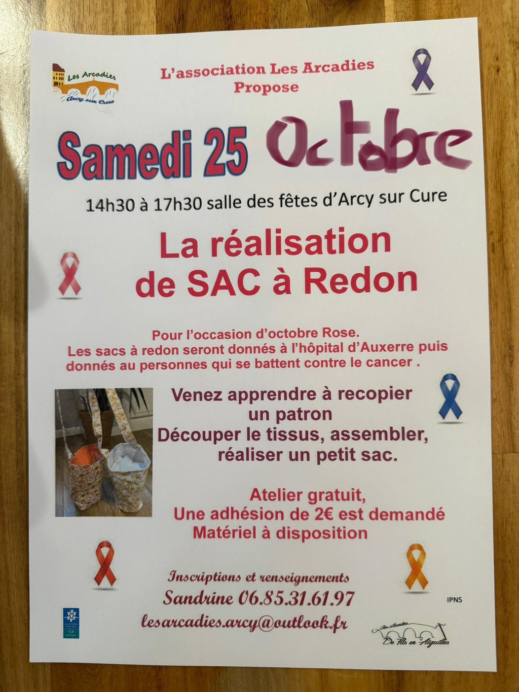 L'association Les Arcadies propose la réalisation de sacs à redon à l'occasion d'Octobre Rose
