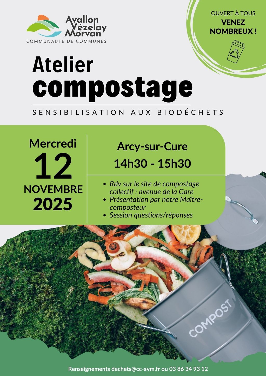 - Suivie d’une seconde partie, au cours de laquelle vous pourrez poser toutes vos questions pratiques au Maître-composteur.