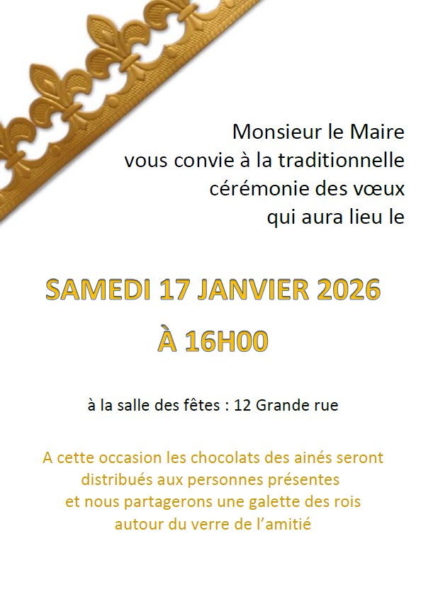 Monsieur le Maire vous convie à la traditionnelle cérémonie des voeux qui aura lieu le