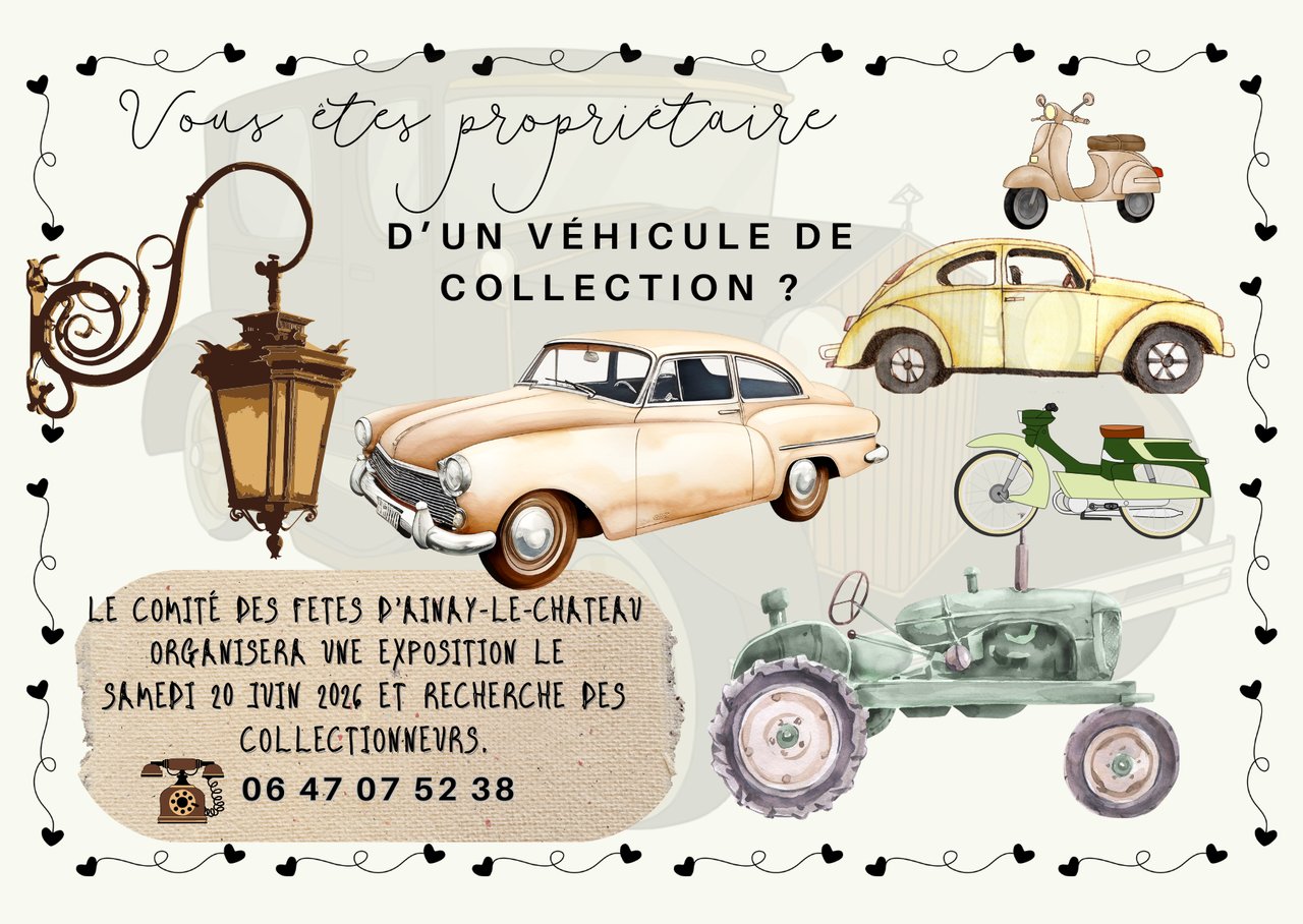 En journée : Exposition de véhicules de collection. Vous possédez une voiture ancienne, une mobylette vintage ou un tracteur de légende ? Venez exposer vos joyaux et partager votre passion avec le public ! Contactez-nous dès maintenant en MP ou commentez ce post pour participer.